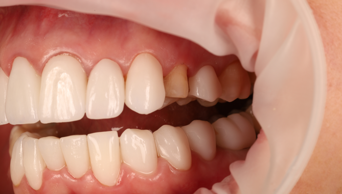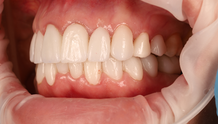 Так как изменение цвета было единичным, пациентке предложена установка коронки на 2.4 зуб. Цирконий обладает высокой прочностью, поэтому это идеальный выбор для жевательных зубов. К тому же депульпированные зубы нуждаются в дополнительной защите. После щадящей обточки проведено сканирование челюстей, зафиксирована временная коронка. Через 7 дней пациентке установили готовую циркониевую коронку.