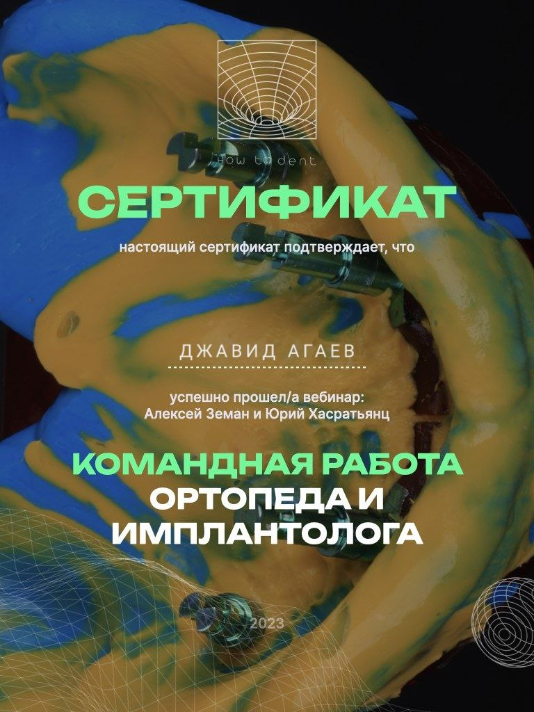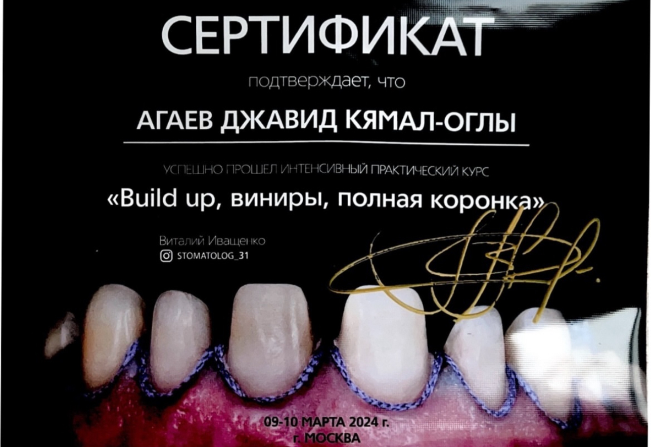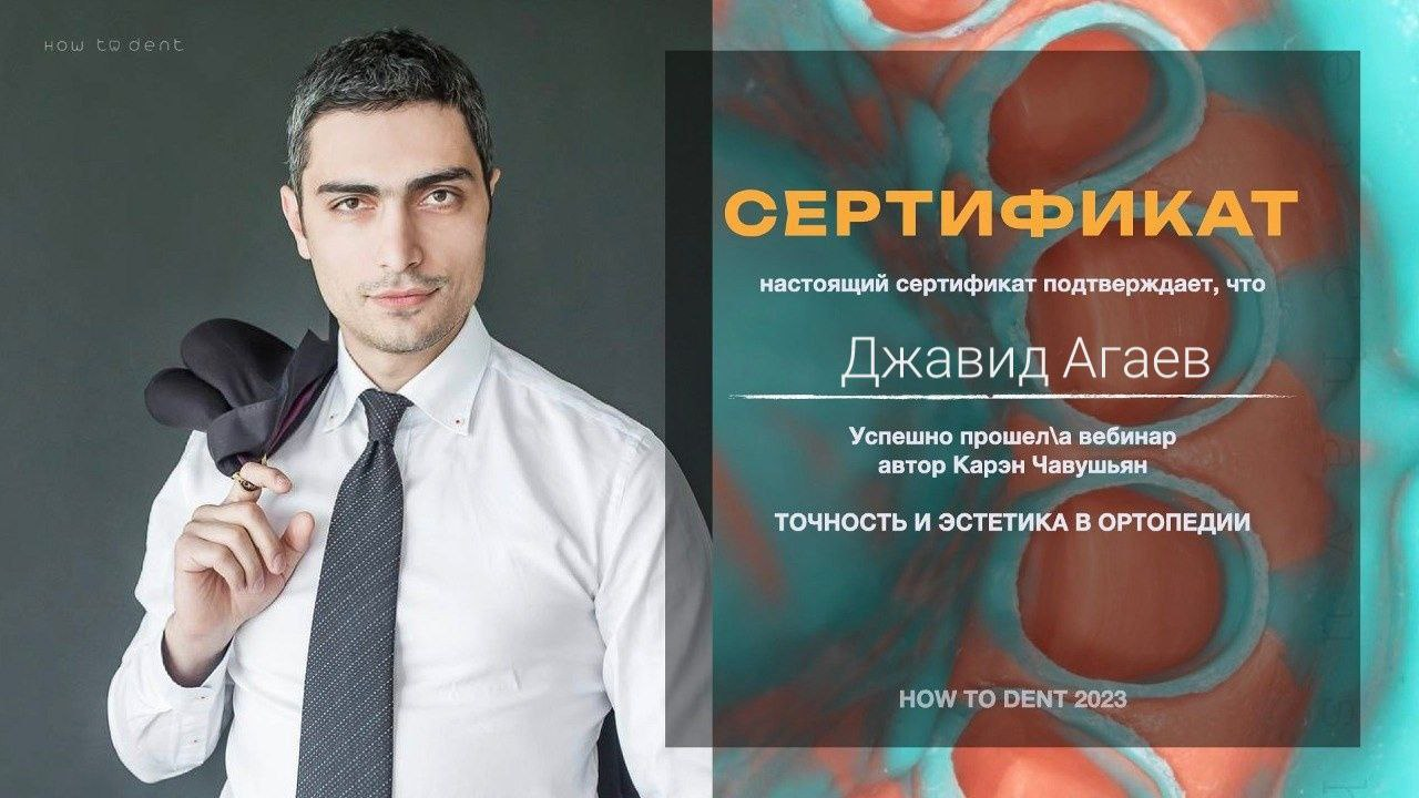 Агаев Джавид Камалович - стоматолог-ортопед сети научных стоматологий «Дантистофф». Окончил Самарский государственный Медицинский Университет
