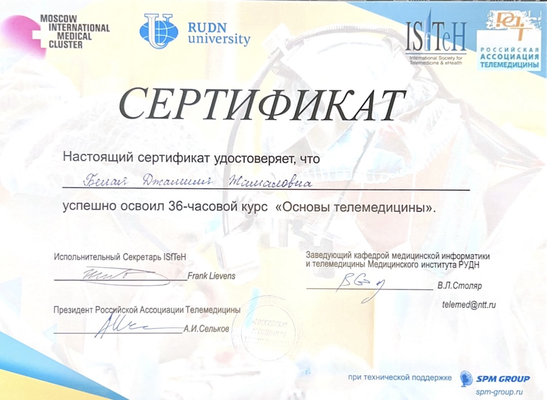 «Основы телемедицины» - на основе кафедры медицинской информатики и телемедицины Медицинского института РУДН