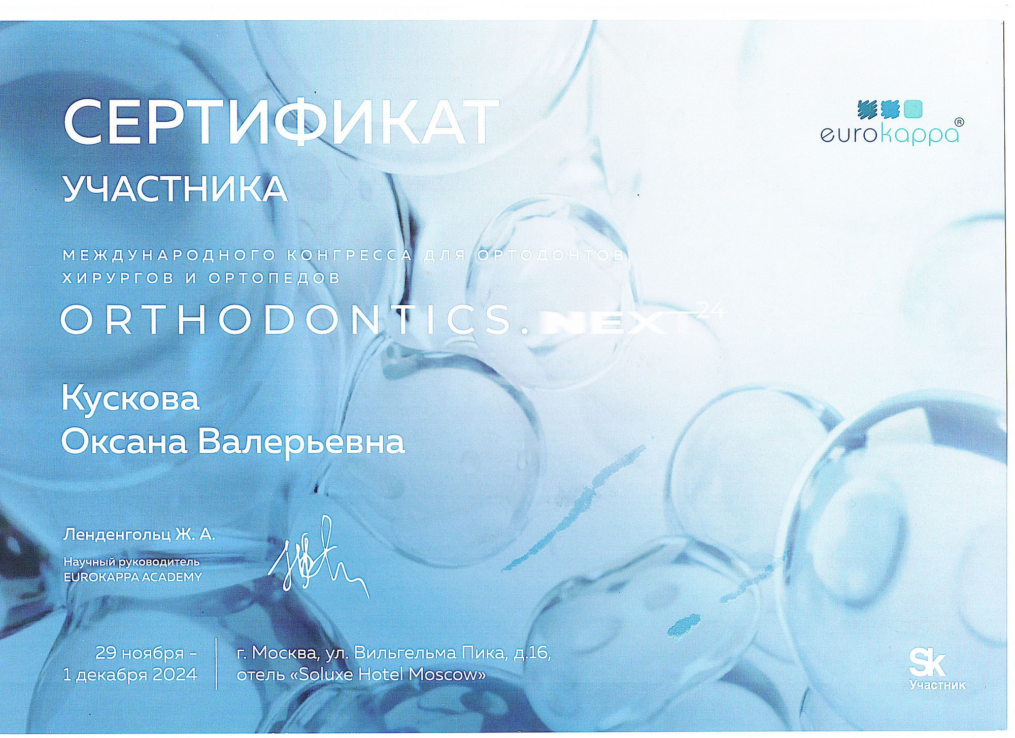 Кускова Оксана Валерьевна - ортодонт сети научных стоматологий «Дантистофф». Окончила Первый Московский Государственный Университет им. И.М.Сеченова