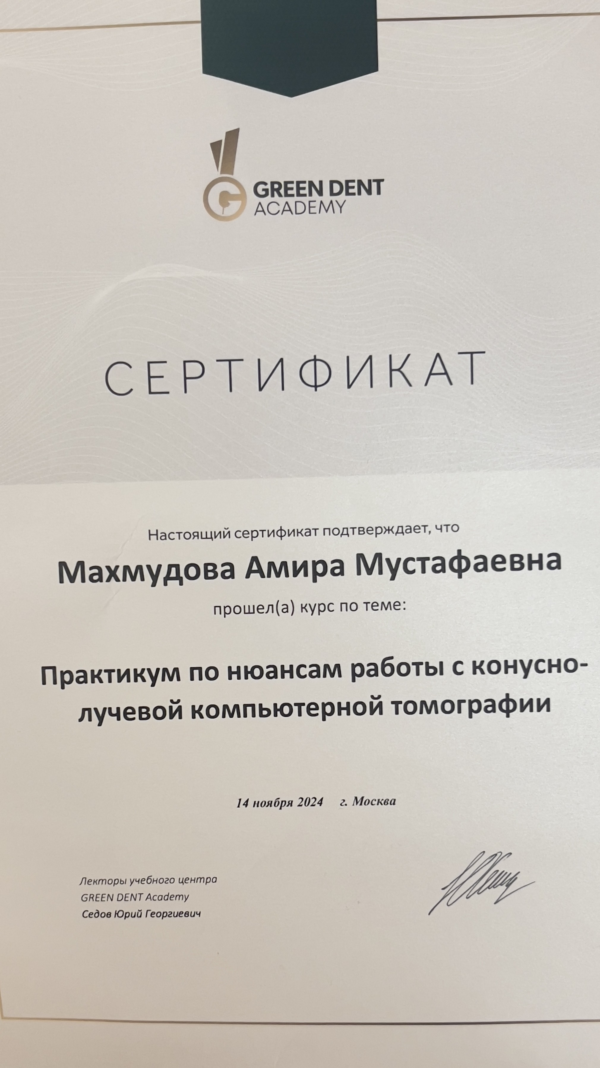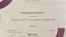 Махмудова Марина Мустафаевна — стоматолог общей практики сети научных стоматологий «Дантистофф». Окончила Кизлярское медицинское училище. Обучалась в частном учреждении дополнительного профессионального образования «Профессионал».