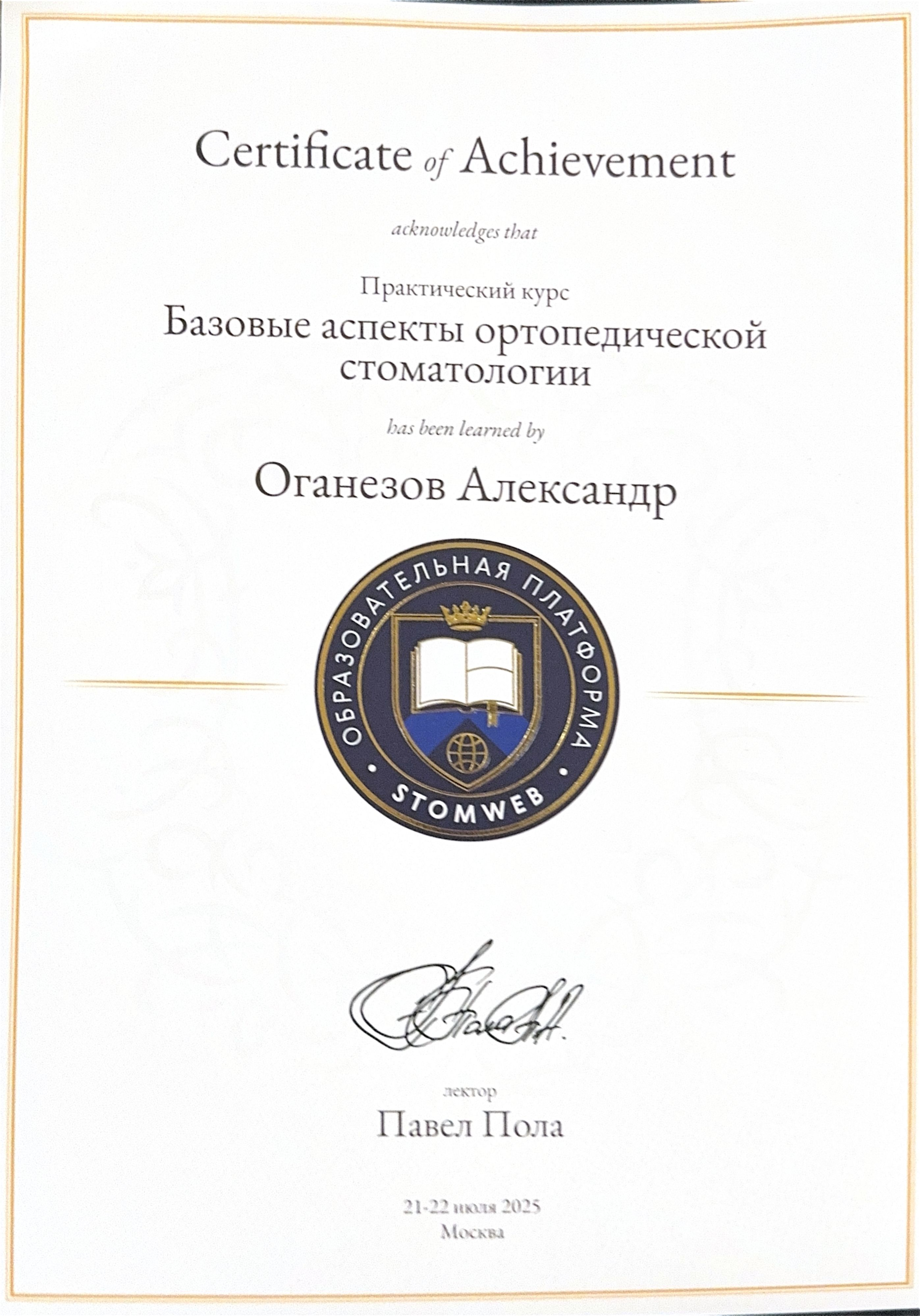 повышение квалификации, специализация «Ортопедическая стоматология»