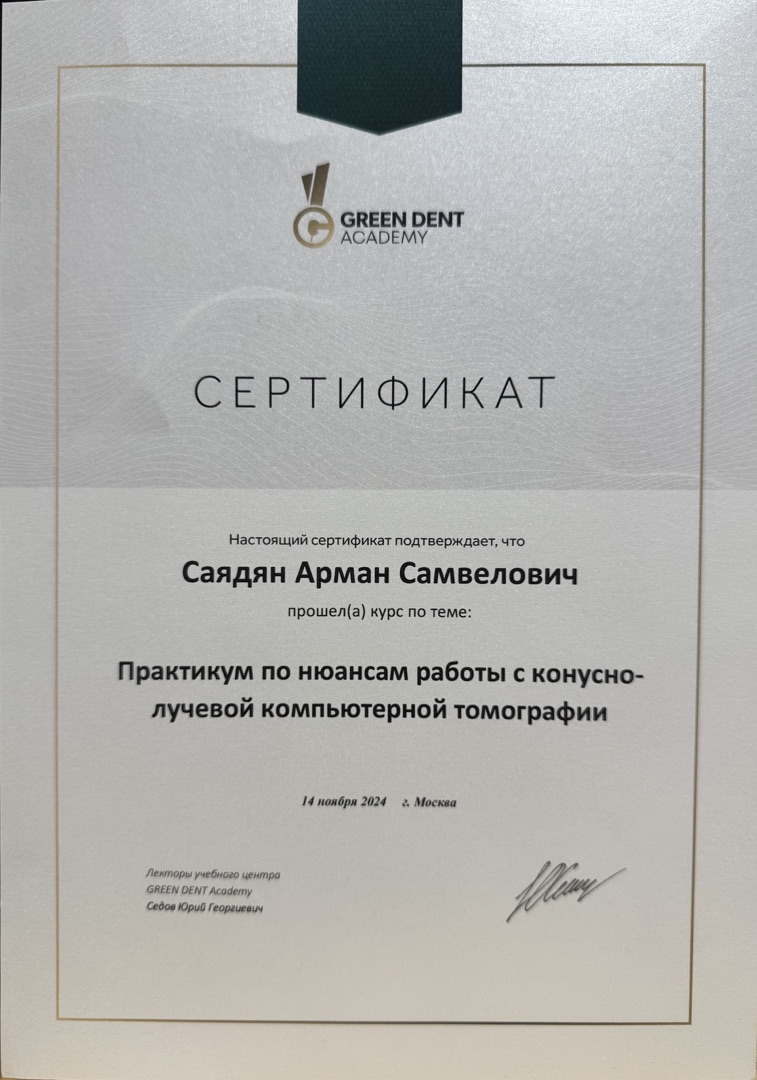 Курс “Практикум по нюансам работы с конусно-лучевой компьютерной томографии” GREEN DENT Academy Седов Юрий Георгиевич Москва