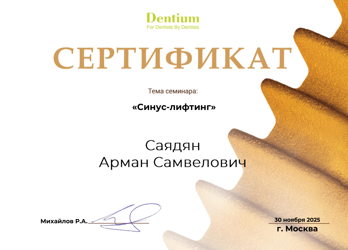2025 Курс «Синус-лифтинг» Михайлов Р.А. Dentium, Москва