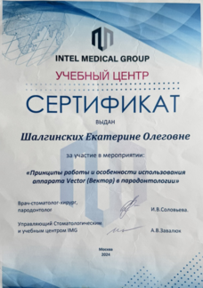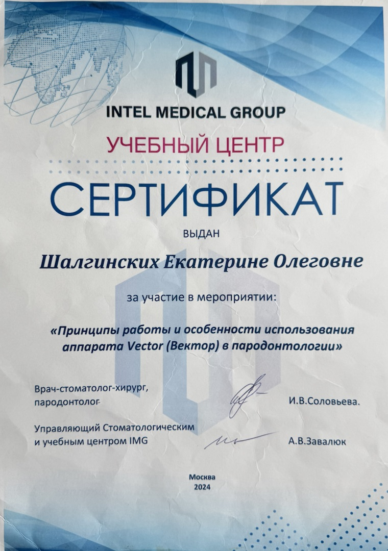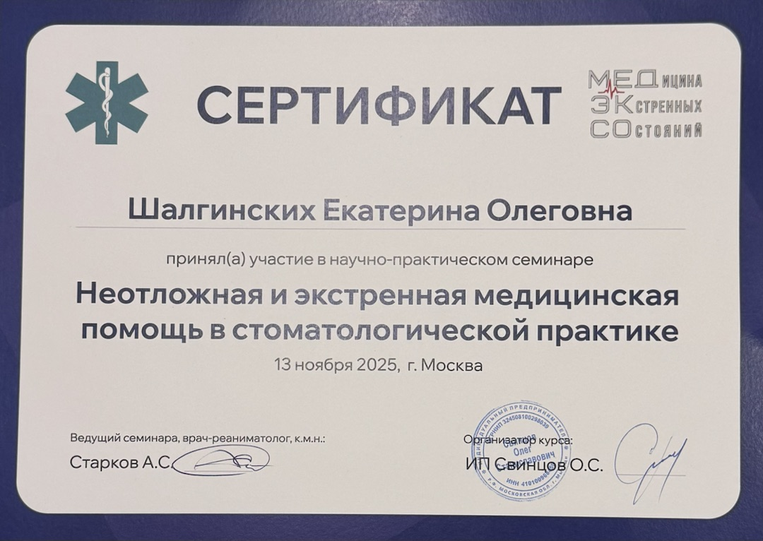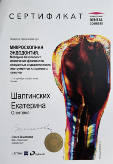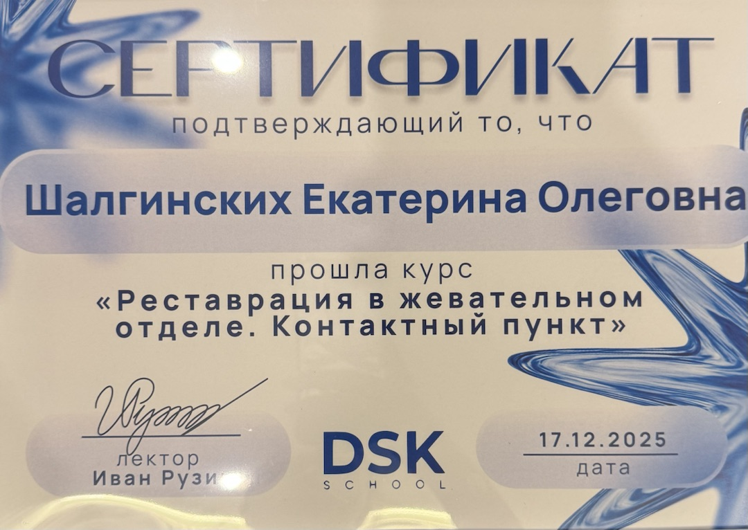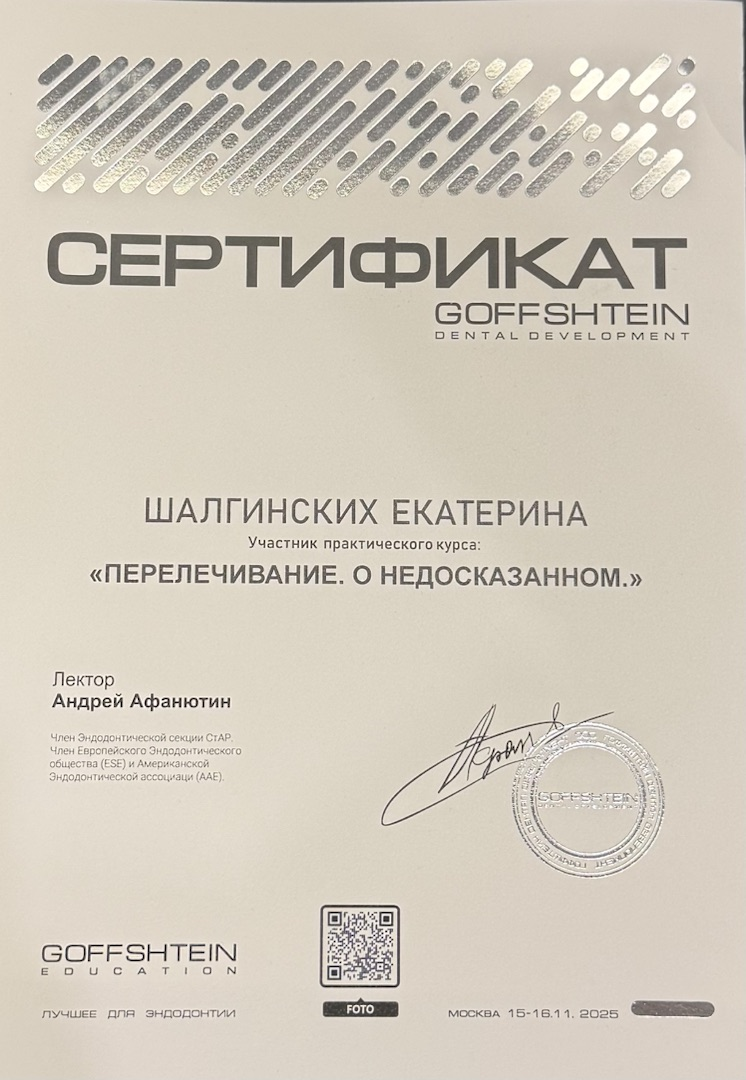 Шалгинских Екатерина Олеговна - стоматолог-терапевт научной стоматологии «Дантистофф». Окончила ФГАОУ ВО ПЕРВЫЙ МГМУ ИМ.И.М. СЕЧЕНОВА МИНЗДРАВА РОССИИ.
