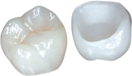 Обычно такие коронки применяются для восстановления жевательных зубов. Они изготавливаются из цельного циркониевого блока и имеют однородный цвет, поэтому невозможно создать на них плавный переход оттенков, как на настоящих зубах.